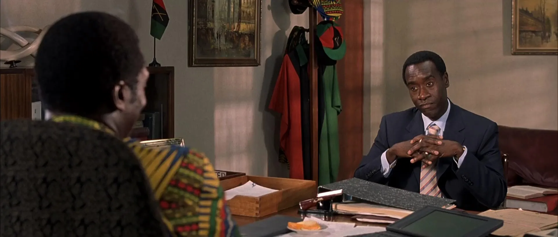 Cast: Don Cheadle as Paul Rusesabagina, Sophie Okonedo as Tatiana Rusesabagina, Nick Nolte as Colonel Oliver, Fana Mokoena as General Bizimungu, Joaquin Phoenix as Jack Daglish, Jean Reno as Sabena Airlines President, Mr. Tillens, Desmond Dube as Dube, Ofentse Modiselle as Roger Rusesabagina, Mathabo Pieterson as Diane Rusesabagina, Hakeem Kae-Kazim as George Rutaganda, Tony Kgoroge as Gregoire, Lebo Mashile as Odette, Antonio David Lyons as Thomas Mirama, Leleti Khumalo as Fedens, Neil McCarthy as Jean Jacques, Mabutho 'Kid' Sithole as Head Chef, Jeremiah Ndlovu as Old Guard, Mosa Kaiser as Elys Rusesabagina, David O'Hara as David, Lennox Mathabathe as Peter, Mothusi Magano as Benedict, Simo Mogwaza as Hutu Captain, Cara Seymour as Pat Archer, Roberto Citran as Priest, Mduduzi Mabaso as Hutu Lieutenant, Harriet Lenabe as Alice the Waitress, Xolani Mali as Policeman, Rosie Motene as Receptionist