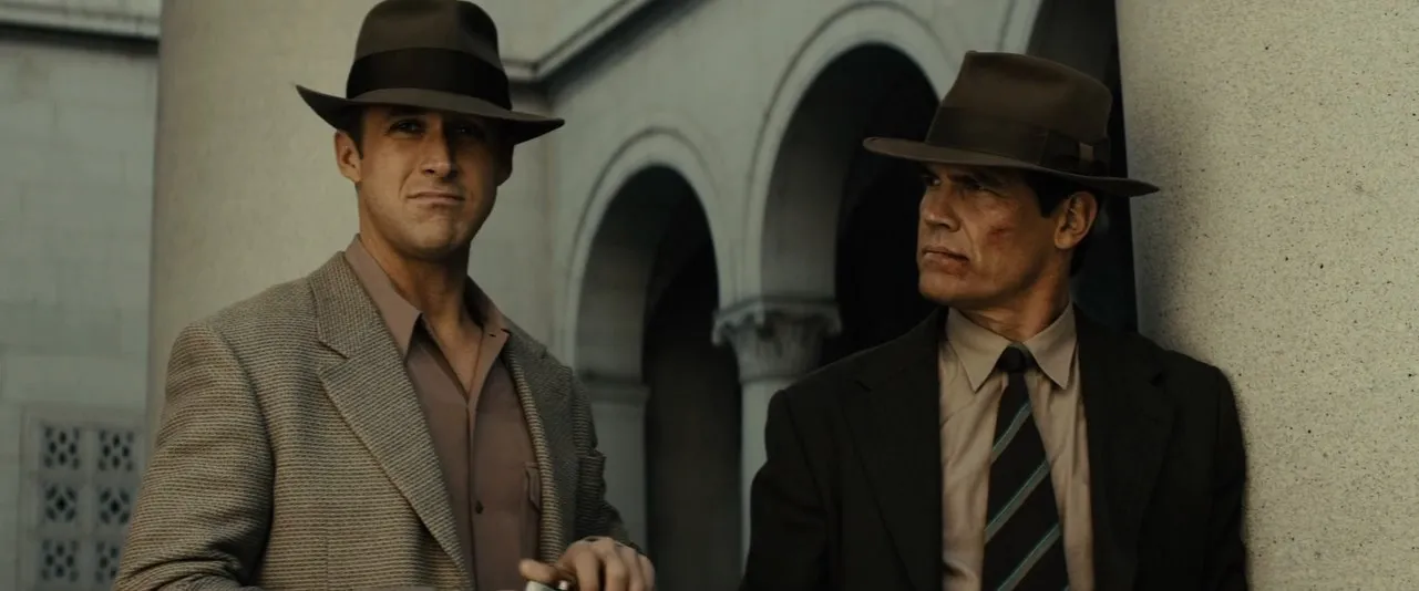 Cast: Josh Brolin as John O'Mara, Ryan Gosling as Sgt. Jerry Wooters, Sean Penn as Mickey Cohen, Nick Nolte as Bill Parker, Emma Stone as Grace Faraday, Anthony Mackie as Coleman Harris, Giovanni Ribisi as Conway Keeler, Robert Patrick as Max Kennard, Michael Peña as Navidad Ramirez, Mireille Enos as Connie O'Mara, Troy Garity as Wrevock, Holt McCallany as Karl Lockwood, Sullivan Stapleton as Jack Whalen, James Carpinello as Johnny Stomp, James Landry Hébert as Mitch Racine, Evan Jones as Neddy Herbert, Josh Pence as Darryl Gates, John Aylward as Judge Carter, Jack Conley as Sheriff Biscailuz, Jack McGee as Lt. Quincannon, Jon Polito as Dragna, Austin Abrams as Pete, Michael Bacall as Comanche, Lance Barber as Comanche, Scott Beehner as Club Figaro Reporter, Mick Betancourt as Detective Sgt. Will Hendricks, De'Aundre Bonds as Duke Del-Red, Mac Brandt as Bruiser, Ambyr Childers as Milk Skinned Blonde, Dennis Cockrum as Elmer Jackson, Maxwell Perry Cotton as Keeler's Son, Jonny Coyne as Grimes, Max Daniels as Jeffrey Clark, Lucy Davenport as Slapsy Maxie's Singer, Darrell Davis as Officer Wyler, Anthony De Longis as Burbank Jail Thug, Christopher Doyle as Edgar Beaumont, David Fleischer as City Hall Reporter, Lucas Fleischer as Club Figaro Reporter, Mickey Giacomazzi as Hatchetman, Dale Gibson as Burbank Cop, Derek Graf as El Dorado Guard, Tom Hallick as El Dorado Investor, Don Harvey as Officer Funston, Austin Highsmith as Patty, Matt Knudsen as Club Figaro Reporter, Anne Leighton as Crying Woman, Neil Koppel as Max Solomon, Michael C. Mahon as Citz Hall Reporter, Rick Marcus as Burbank Cop, Derek Mears as Bridge Goon, Cazimir Milostan as Desk Officer, Brandon Molale as Jimmy 'Bockscar' Knox, Anthony Molinari as Lorenzo Molinari, Michael Owen as Burbank Jail Thug, Riel Paley as City Hall Reporter, Michael Papajohn as Mike 'The Flea', Esther Scott as Letty, Haley Strode as Keeler's Wife, Yvette Tucker as Carmen Miranda, Wade Williams as Rourke, Jeff Wolfe as Giovanni Vacarezza, Danny Wynands as Grenade Goon, Eboni 'Chrystal' Adams as Dancer, Nadyla Blakemore as Dancer, Mandy Coulton as Dancer, Michelle Current as Dancer, Tiffany Daniels as Dancer, Monifa Ellis as Dancer, Hilary Fleming as Dancer, Scott Fowler as Dancer, Melanie Gage as Dancer, Asiel Hardison as Dancer, Michael Higgins as Dancer, Scott Hislop as Dancer, Jermaine Johnson as Dancer, Eva La Dare as Dancer, Stephanie Landwehr as Dancer, Tina Mayer as Dancer, Marcy McCusker as Dancer, Jacoby Mosby as Dancer, Chris Moss as Dancer, Jared Murillo as Dancer, Alycia M. Perrin as Dancer, Henry Chopper Platt as Dancer, Chandrae Rottig as Dancer, Dougie Styles as Dancer, Stephen Sayer as Dancer, Kelleia Sheerin as Dancer, Brett Sturgis as Dancer, Kevin James Sporman as Dancer, April Marie Thomas as Dancer, Forrest Walsh as Dancer, Lizzy Watts as Dancer, Charles Wiggins III as Dancer, Jason Williams as Dancer, Christopher Aber as Reporter (uncredited), Pamela Adamic as Drugged-Out Girl (uncredited), Michael Arturo as Dealer (uncredited), Kojo Asiedu as Bar Patron (uncredited), Robert T. Barrett as LAPD Cop (uncredited), Bill Blair as Casino Gambler (uncredited), Bob Bouchard as Movie Patron (uncredited), Freedom Bridgewater as Bartender (uncredited), Matt Callahan as Chinatown Shopper (uncredited), Greg Cannone as Slapy Maxie's Waiter (uncredited), Pamela Cedar as Gambler (uncredited), Michael Jay Copeland as Water pitcher waiter (uncredited), Clint Corley as Man at Union Station (uncredited), Eddie Davenport as Goon Gunman (uncredited), Seth Di Marco as Goon (uncredited), Isabel Dresden as Hedy Lamarr (uncredited), Jeremy Dunn as Gangster (uncredited), Ken Edling as Detective (uncredited), Chelsea Edmundson as Cigarette Girl (uncredited), Gray Ellis as Bar Patron (uncredited), Cathy Fielding as Bookmakers' Secretary (uncredited), Paige Flannery as Club Patron (uncredited), Marilyn Foley as Chinatown Shopper (uncredited), Leni Ford as Rich Widow (uncredited), Kristin Gagliardi as Slapsy Maxie's Patron (uncredited), Gill Gard as Slapsy Maxie's Doorman (uncredited), Nancy Gassner-Clayton as Caroler (uncredited), Debby Gerber as Plaza Runner (uncredited), Tanner Gill as Hookey Rothman (uncredited), Nick Gligor as Slapsy Maxie's Waiter (uncredited), Sly Green as Club Patron (uncredited), Louise Griffiths as Screaming Woman (uncredited), Frank Grillo as Russo (uncredited), Marie Grujicic-Delage as Fluzzy (uncredited), Rebecca Hancock as Club Patron (uncredited), Karen Harper as Caroler (uncredited), Steve Hernandez as Carmen Miranda Drummer (uncredited), Rebecca Honett as Cigarette Girl (uncredited), Todd Honeycutt as Caroler (uncredited), Courtney Howard as Club Patron (uncredited), Elizabeth Howell as Lady of the Night (uncredited), WBBrown II as LAPD (uncredited), Chris Jackson as Bar Patron (uncredited), Pat Jankiewicz as Nico (uncredited), David Johnson as Club Patron (uncredited), Sergio Kato as Officer Lane (uncredited), Faye Kelly as Business Woman (uncredited), Kristen Marie Kelly as Girl at Nightclub (uncredited), Jess King as Thug (uncredited), John William King as Casino Cowboy (uncredited), Olivia Ku as Suzie Wang (uncredited), Elaine Lockhart as Bar Patron (uncredited), Amy Mader as Chinatown Shopper (uncredited), Oscar Magana Jr. as Funeral Mourner (uncredited), Marlene Manes as Gangster Girl (uncredited), Nancy McCrumb as Betty Page (uncredited), Mason McCulley as Caroler (uncredited), Michael Lee Merrins as #1 Uniformed Officer (uncredited), Daniel Muller as Club Patron (uncredited), Kat Munday as Drugged Out Girl #2, Jim J. Mundy as Club Patron (uncredited), Nino Nava as Pilgrim (uncredited), Stephane Nicoli as LAPD Officer (uncredited), Michael Ouellette as Detective (uncredited), Veronica Parks as Christmas Lady (uncredited), Don Pecchia as Mob Boss (uncredited), Geoff Pilkington as Angry Guy in Park (uncredited), Josh Polizzi as Slapsy Maxie's Waiter (uncredited), Carolina Provvido as Drugged-Out Girl (uncredited), Ron 